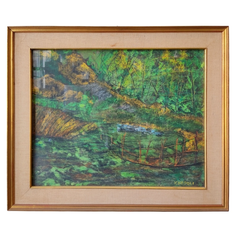 Dipinto veduta case di montagna "Guarino 1935"